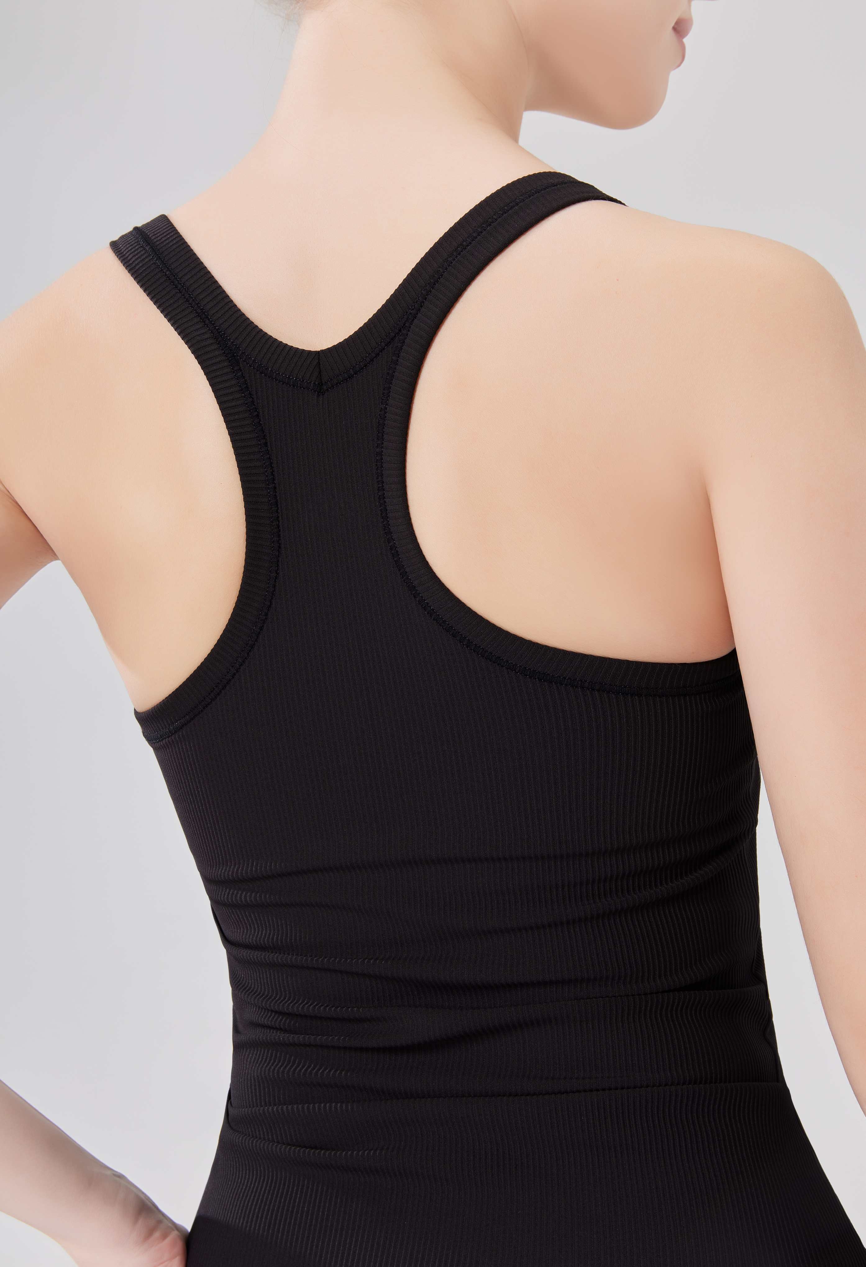 【25035 -mijawear】 Yoga Long Tank Top Item Number: 25035 Sizes: S - M - L - XL Colors:Black / White Seasons: Suitable for all seasons Thickness: Medium Type: Long Style Material Composition: Nylon 72.9% Spandex 27.1%